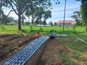 Budidaya Kacang Tanah di Lapas Terbuka Pasaman, Kasubag TU Dampingi WBP Pemasangan Plastik Mulsa.