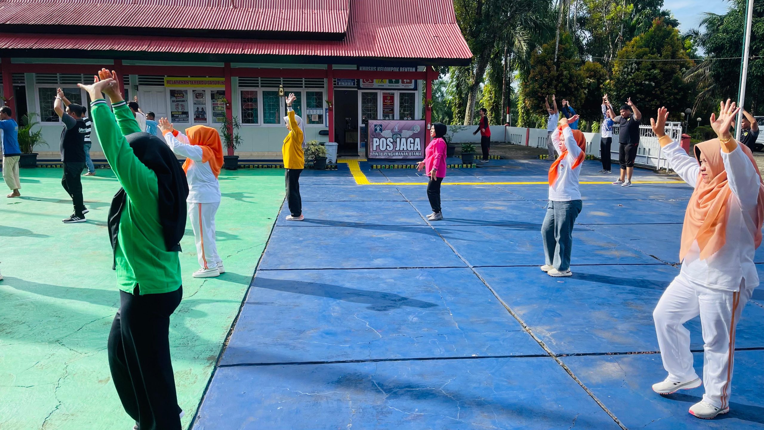 Pasaman Barat – Pada pagi yang cerah, semangat kebersamaan tampak di halaman Kantor Lapas Terbuka Pasaman, di mana para pegawai, anggota Dharma Wanita, dan warga binaan bersatu dalam kegiatan senam pagi. Kegiatan ini bertujuan untuk meningkatkan kebugaran fisik, sekaligus mempererat hubungan antar peserta yang terlibat. Dipimpin oleh instruktur senam yang energik, para peserta terlihat antusias mengikuti setiap gerakan yang diiringi oleh musik yang membangkitkan semangat, Sabtu (9/11).