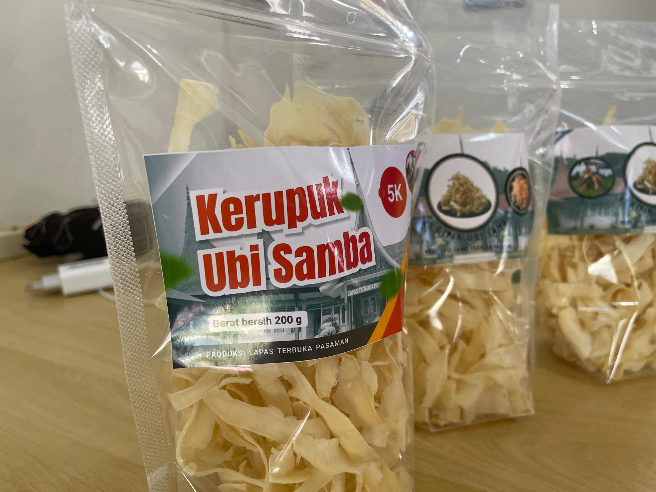 Produk ini lahir dari kombinasi program pembinaan pertanian dan pelatihan keterampilan pengolahan pangan yang difasilitasi oleh petugas Lapas. Ubi yang ditanam di lahan pertanian Lapas oleh warga binaan diolah menjadi kerupuk khas dengan cita rasa gurih dan renyah, yang diberi nama “KERUPUK UBI SAMBA”.