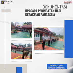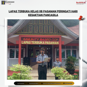 Pasaman Barat – Lapas Terbuka Kelas IIB Pasaman melaksanakan Upacara Peringatan Hari Kesaktian Pancasila. Senin, (2/10) Upacara ini bertujuan untuk mengenang sejarah bangsa dalam mempertahankan Ideologi Pancasila. Tema pada peringatan tahun 2023 ini adalah ” Pancasila Pemersatu Bangsa Menuju Indonesia Maju”.