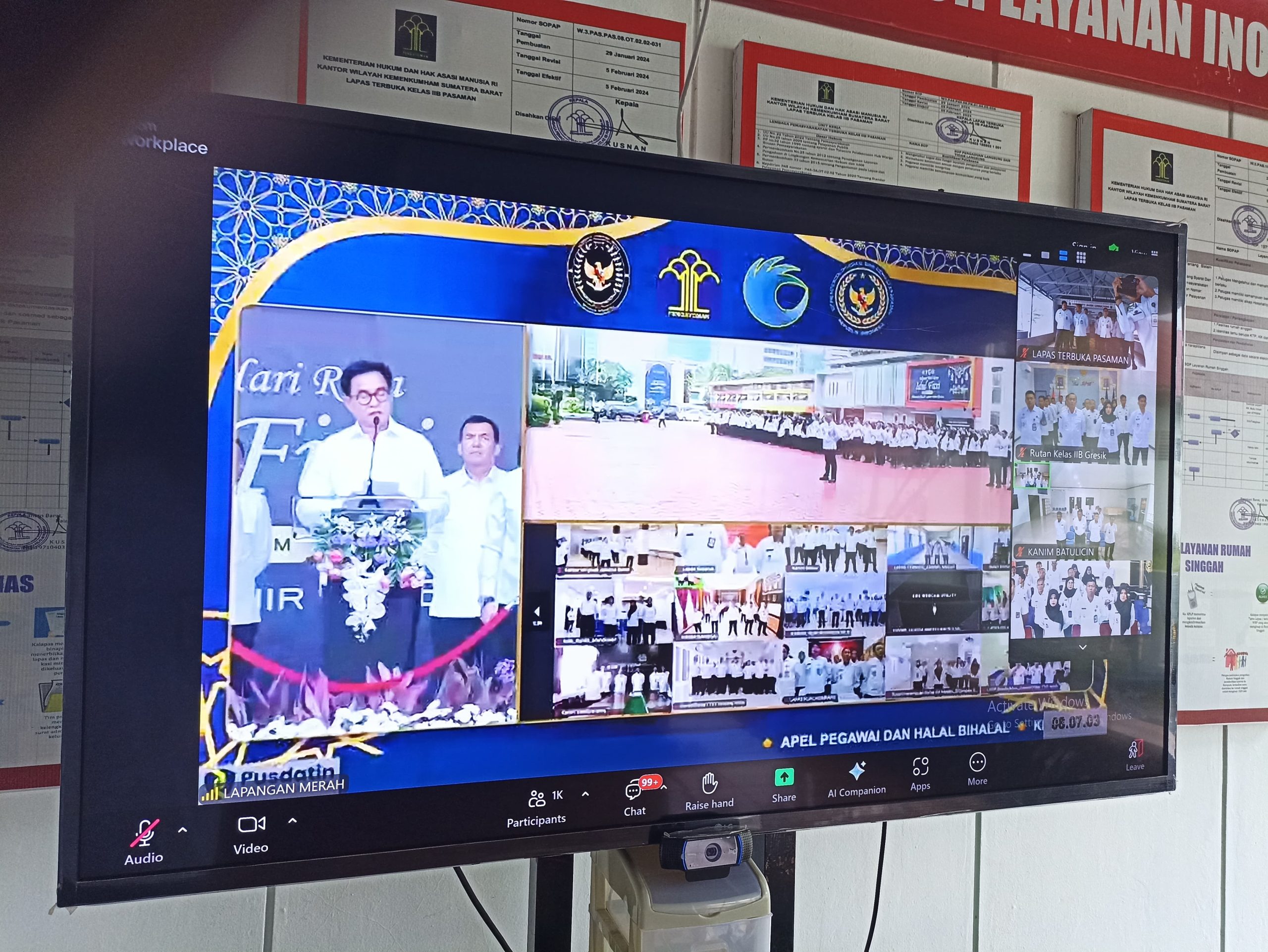 Pasaman Barat – Lembaga Pemasyarakatan (Lapas) Terbuka Kelas IIB Pasaman mengikuti apel pagi pegawai dan halal bihalal keluarga besar Kementerian Koordinator Bidang Hukum, HAM, Imigrasi dan Pemasyarakatan 1 Syawal 1446 H secara virtual, Rabu (09/04/25).