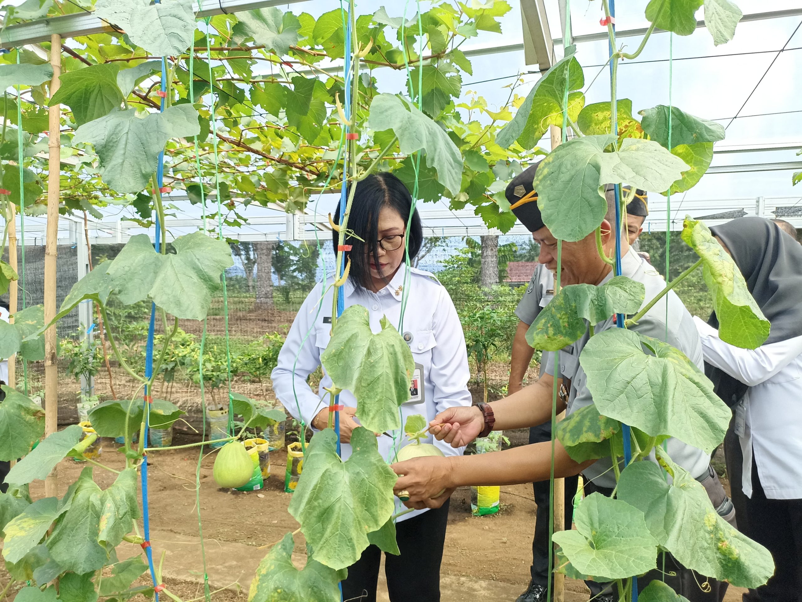 Kegiatan diawali dengan penanaman bibit kacang tanah sebagai bagian dari upaya pemberdayaan warga binaan dalam bidang pertanian. Selanjutnya, Kakanwil Ditjenpas (Ibu Marselina Budiningsih) bersama rombongan melakukan survei ke area greenhouse untuk melihat perkembangan tanaman hortikultura yang dikelola warga binaan, sekaligus melakukan panen buah melon yang tumbuh subur di area tersebut.