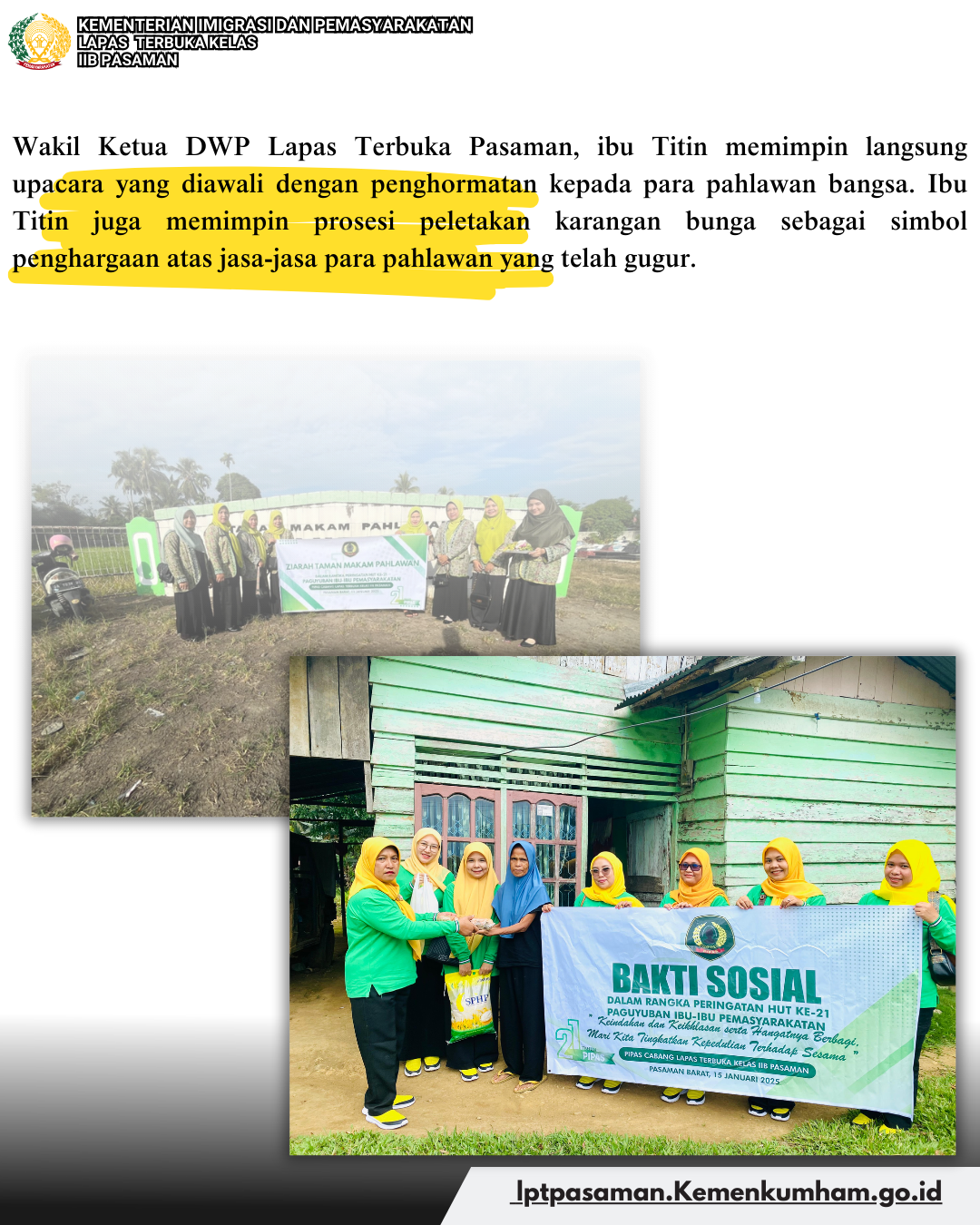 Peringati HUT PIPAS ke-21, DWP Lapas terbuka pasaman Gelar Upacara Tabur Bunga dan bantuan sosial untuk Masyarakat Terdampak.