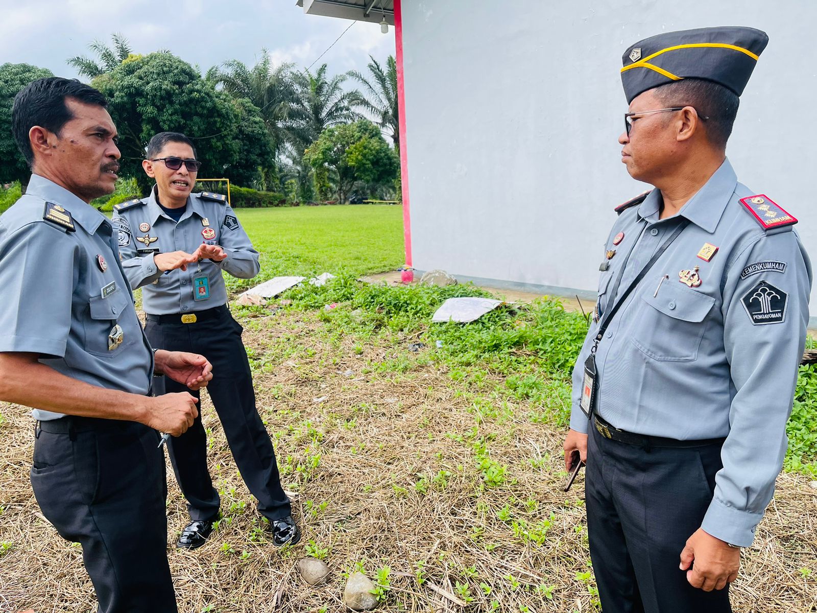 terlihat kalapas dan pejabat struktural gerak cepat melakukan pengukuran lahan yang nantinya akan dijadikan sebagai lahan agrowisata perkebunan.