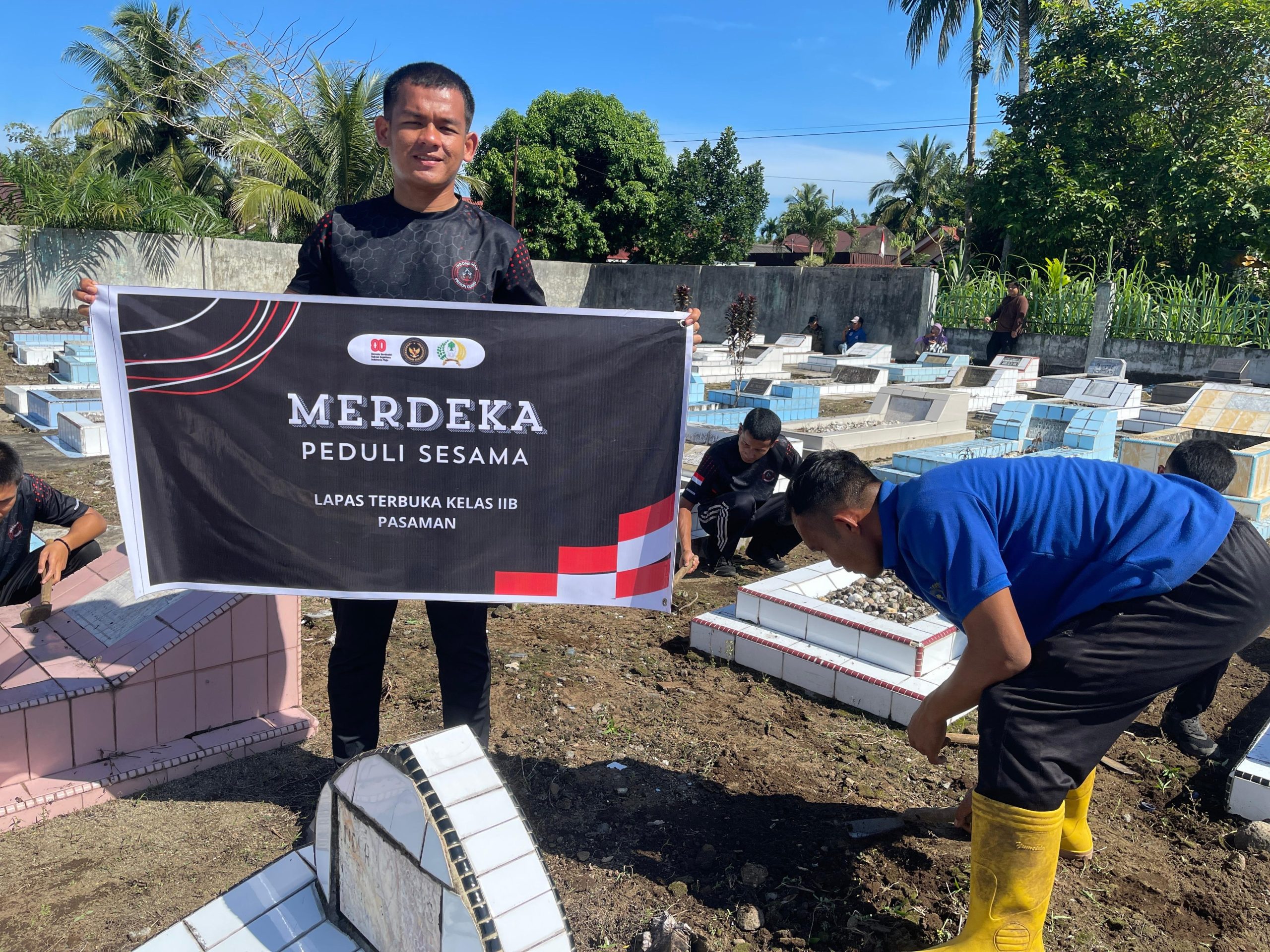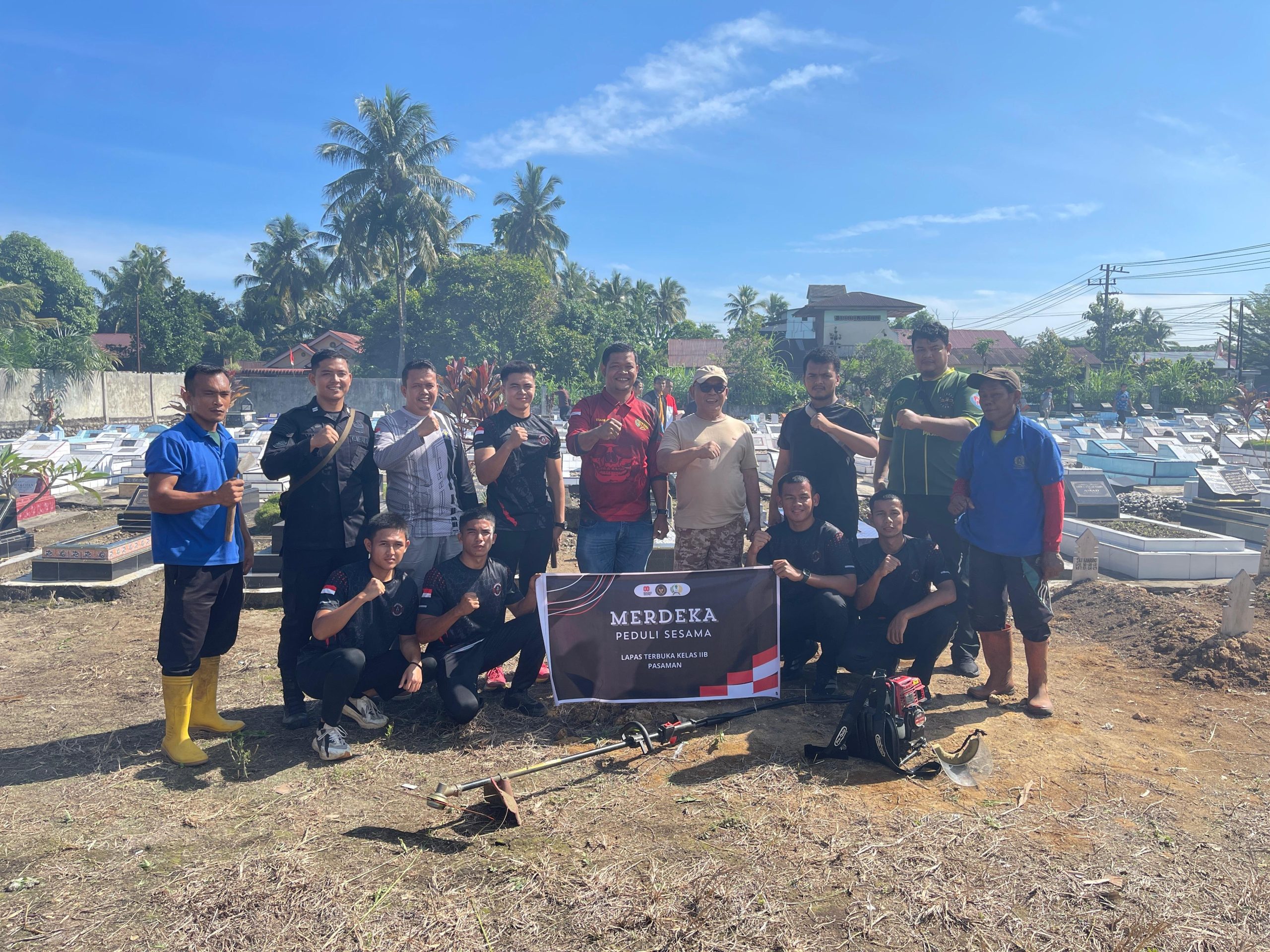 Pasaman Barat – Rabu (13/8), Dalam semangat “Merdeka Peduli Sesama”, pegawai, CPNS, dan warga binaan Lapas Terbuka Pasaman bersama unsur pemerintah daerah dan masyarakat berpartisipasi aktif dalam kegiatan gotong royong membersihkan dan merapikan lingkungan Taman Makam Pahlawan Jambak, Pasaman Barat.