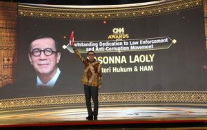 Menteri Hukum dan HAM Yasonna Hamonangan Laoly terima penghargaan dalam CNN Indonesia Awards kategori Outstanding Dedication to Law Enforcement and Anti-Corruption Movement. Chairman CT Corp Chairul Tanjung memberikan penghargaan langsung kepada Yasonna di JW Marriott Hotel Medan.